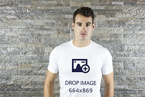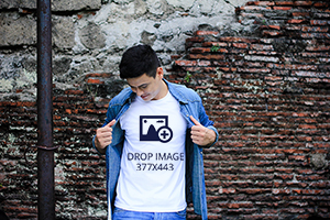 White T-Shirt Mockup – Male Posing Brick Wall