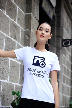 White T-Shirt Mockup – Woman Posing Fence